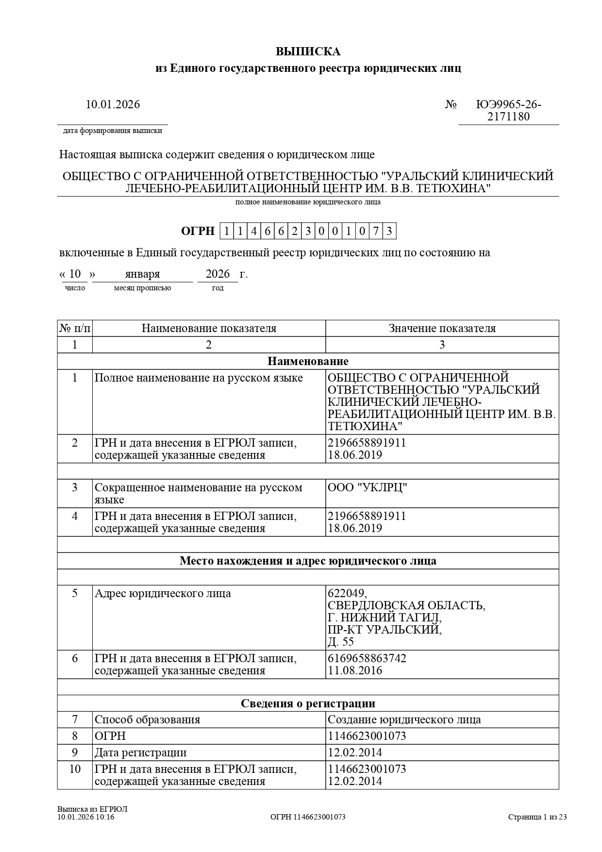 Выписка из ЕГРЮЛ